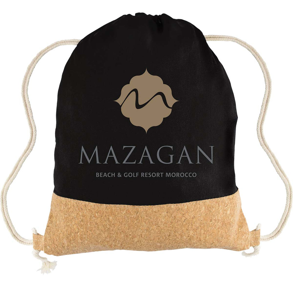 Your company logo will stand out on this Gold Bond Inc Black Cotton Canvas Drawstring Backpack with Cork. Not only does it make the best event giveaway for advertising your brand's name to the public, but it can also be the perfect employee gift. The bag is designed with convenience ideal for daily use - it's everything that you love about a drawstring, but with an added cork accent panel.