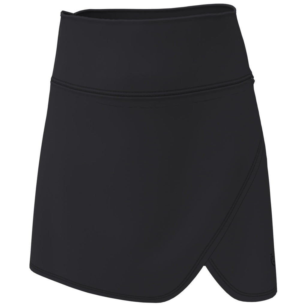 A. PUTNAM Women's Black Wrap Skort with a corporate logo offers stylish fun and functionality for your logoed apparel line. The wrap skort combines a classic skirt with built-in shorts underneath to allow for freedom of movement no matter what your day holds. Great for tennis, golf, or a busy day, these are a must-have. Place your order today.