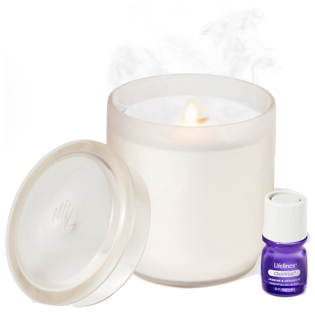 Lifelines Frosted Glass Cream Flameless Candle Diffuser helps you create a custom look for any room of the house. This innovative flameless candle diffuser can fill your space with a beautiful aroma. Simply put the included ClickWick essential oil blend into the base, open the lid, and enjoy. Perfect as a gift for yourself or others.