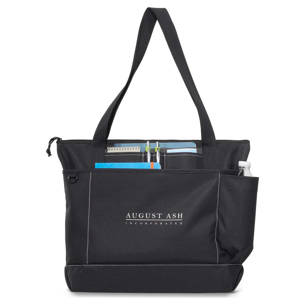 You have a lot to do, and not much time in which to do it. There are errands to run, people to see, and you have no idea how you're going to get everything you need from Point A to Point B in a hurry. Fortunately, there's an invention for just such a problem: the Gemline Black Avenue Business Tote. Specifically, this Tote is perfect for handling those everyday tasks while keeping you mobile. Simply add everything you need to the tote, head out on the road, and you're ready to conquer the day. Now just add your custom logo to this tote to make sure that people can rep your brand everywhere they go.Please note that there may be a delay in processing your 48-Hour order if artwork revisions are required. Orders requiring revisions or additional details will no longer qualify for 48-Hour production. The 48-Hour lead time is for production only, not delivery. You will select your shipping speed at checkout. 48-Hour orders are not eligible for cancellation. All sales are final. Learn more on our FAQ Page.
