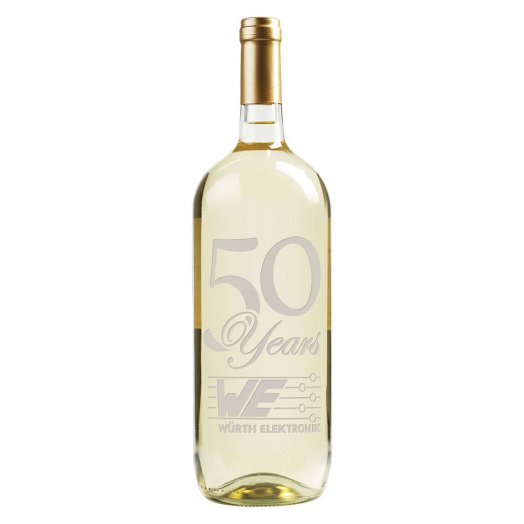 Nothing makes a statement quite like a logoed A+ Wines Etched Chardonnay White Wine 1.5L with No Color Fill. This large bottle of wine is ideal for creating a branded centerpiece at your next corporate event. Or, give them away as a gift for after events to customers.