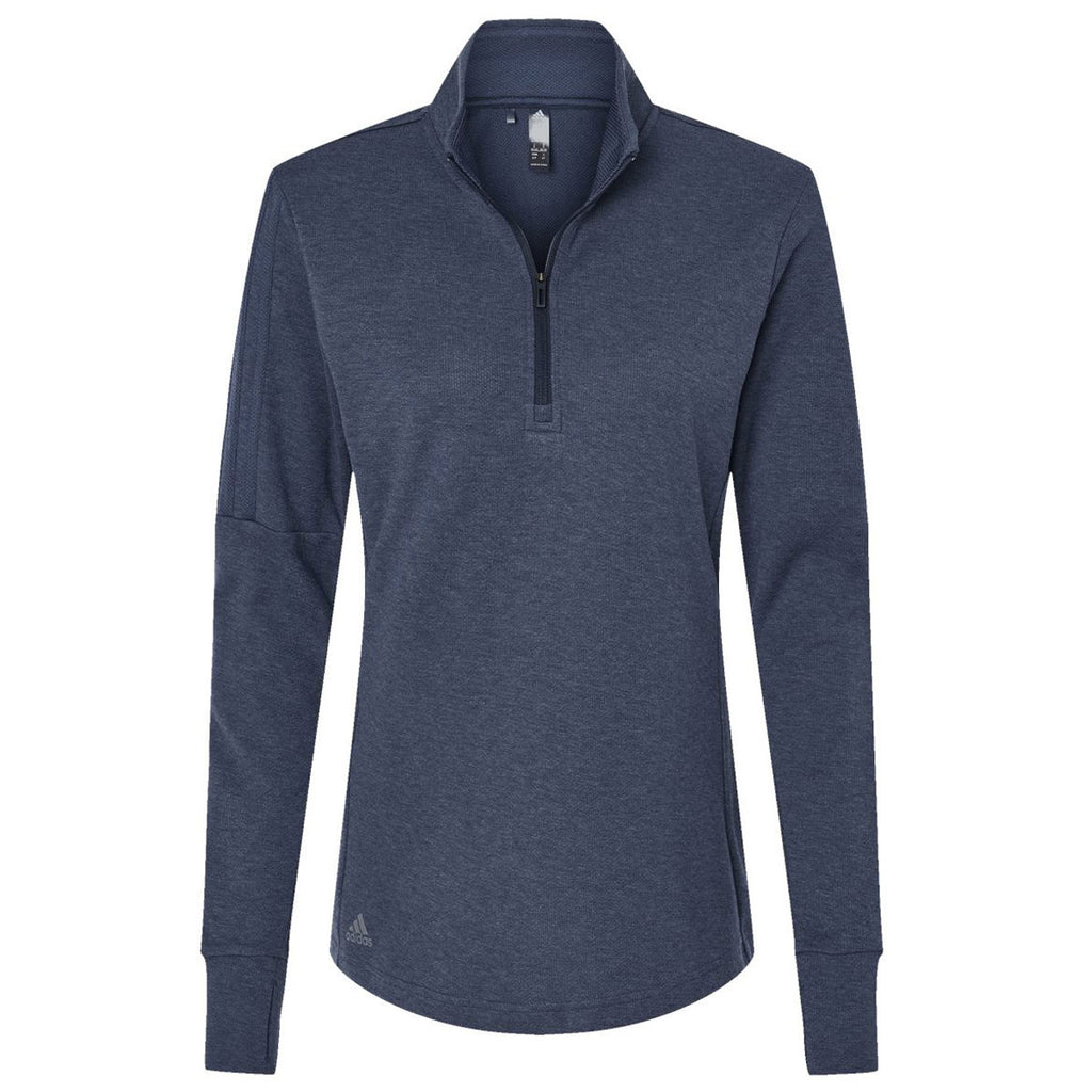 adidas Women's Collegiate Navy Melance 3-Stripes Quarter Zip Pullover
