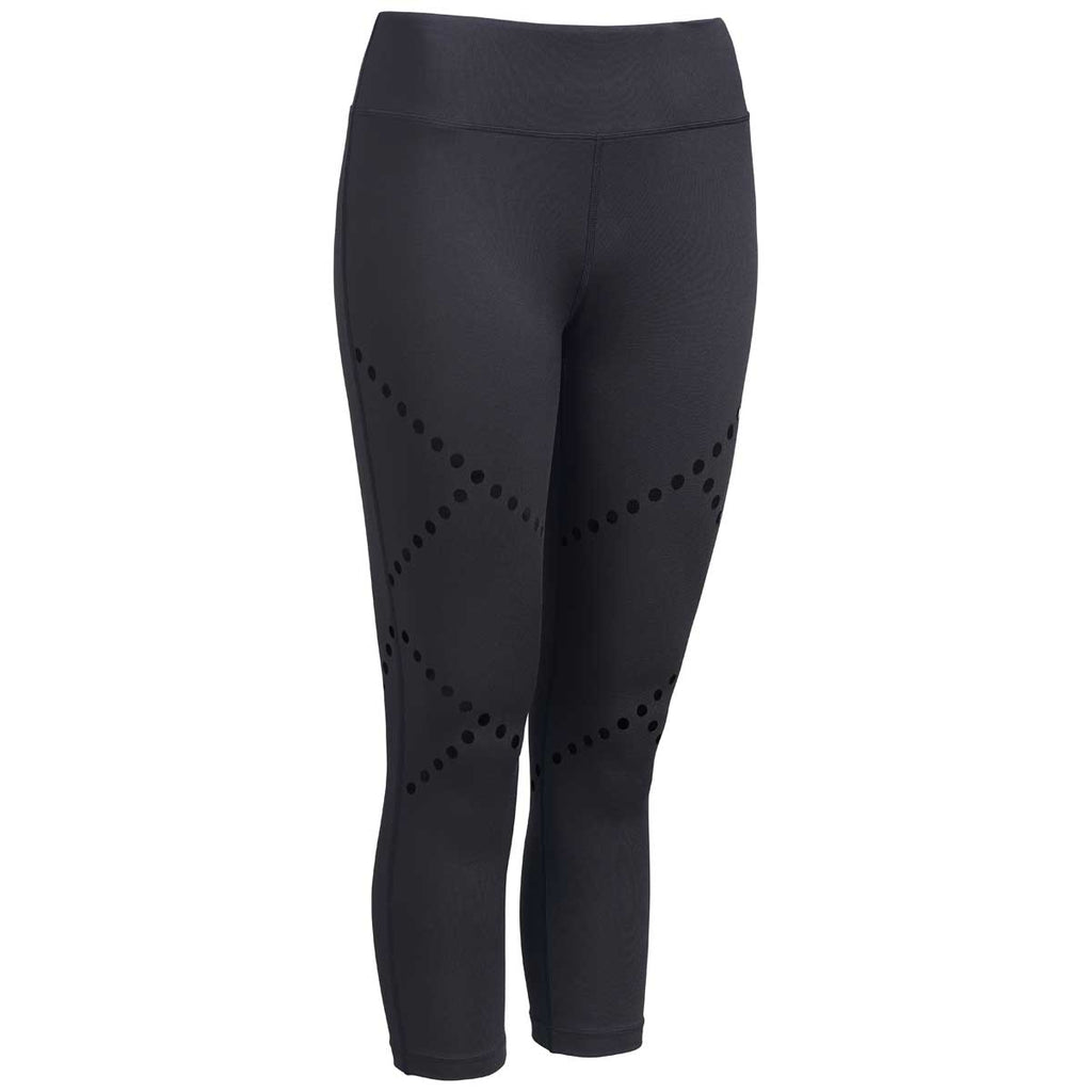 As a corporate apparel gift, the logoed Expert Women's Black Diamond Laser Cut Capri will put a smile on the faces of your high flying team of employees, as well as the loyal customers that plan to attend customer appreciation day. Maximum comfort delivered by the gusset and flat seams keeps everyone feeling energized throughout a busy day of outdoor activities. Rugged microfiber polyester blends with a little spandex to create a Capri that withstands constant punishment, as well as provides the ultimate in fabric stretching. Display your company logo added on the right thigh to get the word out about your brand.The minimum order for this product is 12 pieces.