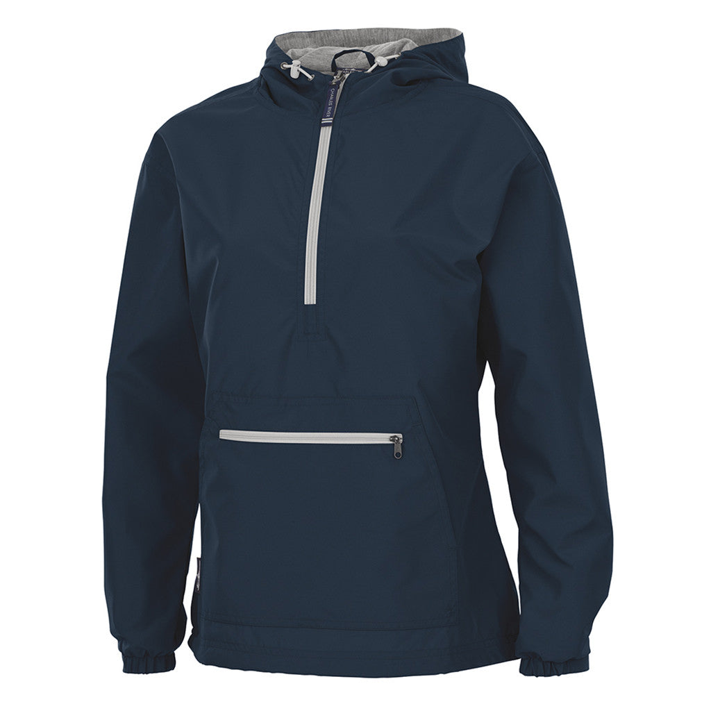 You want full protection from the elements when you go outside so you never feel caught in the rain. But you don't want to look like you're completely out of your element, either. What's the right solution? This Charles River Women's Navy Chatham Anorak Solid, which delivers both style points and weather resistance. The 100% Softex Polyester is surprisingly durable even in the elements, while the interior drawstring allows you to cinch the fit for a stylish silhouette. You can even add a hood or keep it zipped off if you don't think it's going to rain. Add your custom logo to complete this picture and you'll be ready for anything.