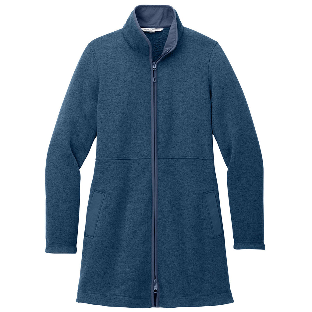 Port Authority Women's Insignia Blue Heather Arc Sweater Fleece Long Jacket