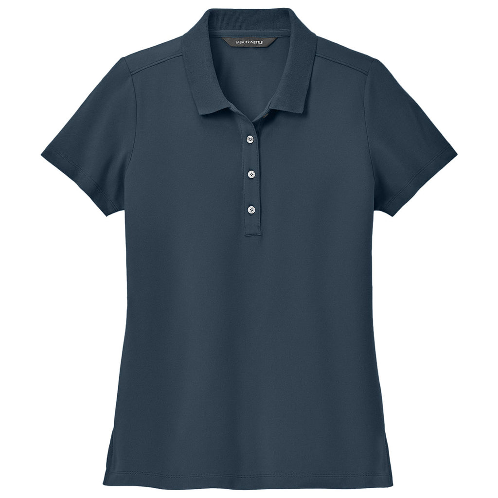 Design your corporate logo for the Mercer+Mettle Women's Night Navy Stretch Pique Polo to create a look that is budget-friendly and comfortable to wear. Perfect for everyone in the office, from the boardroom to the interns, this polo has side vents, moisture-wicking, and lightweight diamond pique for comfort. Place an order today.Corresponding Men's Style: Mercer+Mettle Men's Night Navy Stretch Pique Polo