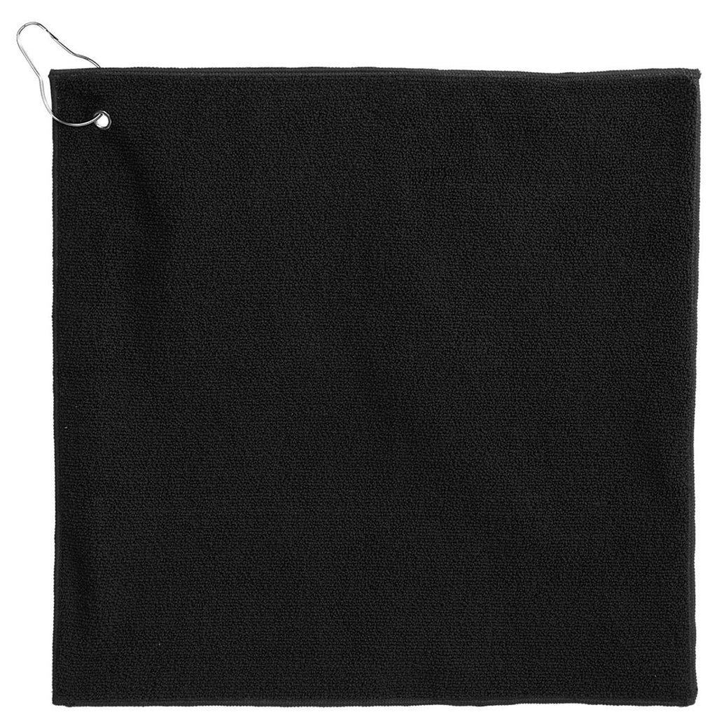The custom Leed's Black 15" x 15" RPET 300g Terry Polyester Towel is compact and convenient for all the golfers in your life. The easy-to-store, soft terry polyester towel provides gentle cleaning for your clubs, wiping sweat, or anything you need while on the course. The metal grommet and hook mean you can hook this to your bag and be on your way.The minimum order for this product is 250 pieces.