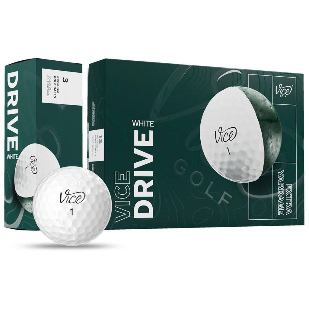 Gain valuable brand impressions by customizing the branded Vice White Drive Golf Balls (One Dozen)! It has low compression for a soft feel and increased distance, and it's tough cover is cut-resistant. Align your company with the tough, versatile nature of this model whether you're traveling to a corporate golf tournament or hosting an event yourself!The minimum order for this product is 5 boxes. Each box contains 12 golf balls.