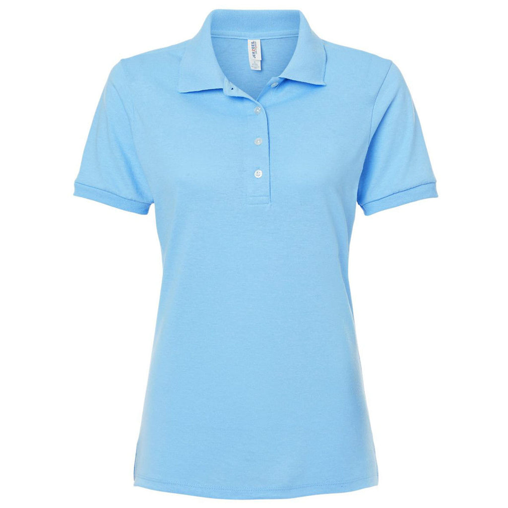 Choose embroidery for the Jerzees Women's Light Blue Dri-Power Polo to create a look that works in the office, as a uniform, or as a casual option when you are chilling out or at home. The sustainably sourced material is pre-shrunk with moisture management and a classic feminine fit. The tear-away label means all-day comfort no matter what is on the schedule.Corresponding Men's Style: Jerzees Men's Light Blue Dri-Power Polo