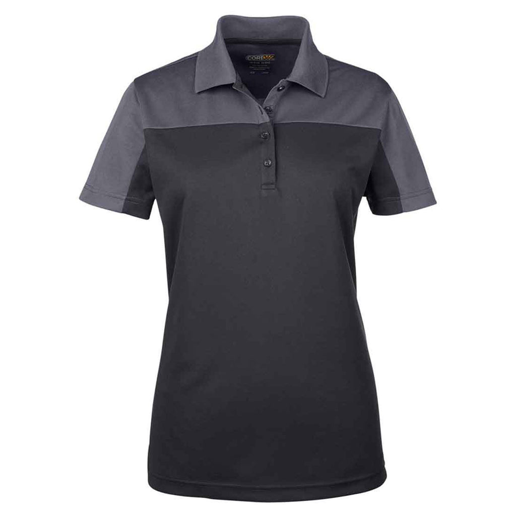 Core 365 Women's Black/Carbon Balance Colorblock Performance Pique Polo