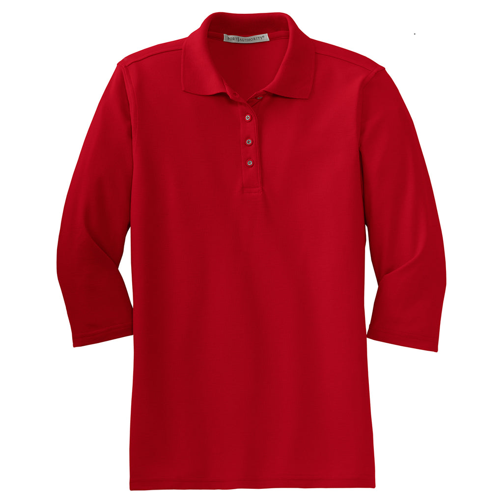 Is there any shirt more universal than a polo shirt like the Port Authority Women's Red Silk Touch 3/4-Sleeve Polo? Consider: they look great at work in a casual environment. They look great at home in a casual environment. They look great dressed up at a more formal event. They look great on the golf course. All of these decriptions match up perfectly with this polo. If you want to make some custom logo apparel that people will love to wear and wear often, you'd better opt for a polo of this quality.Highlights