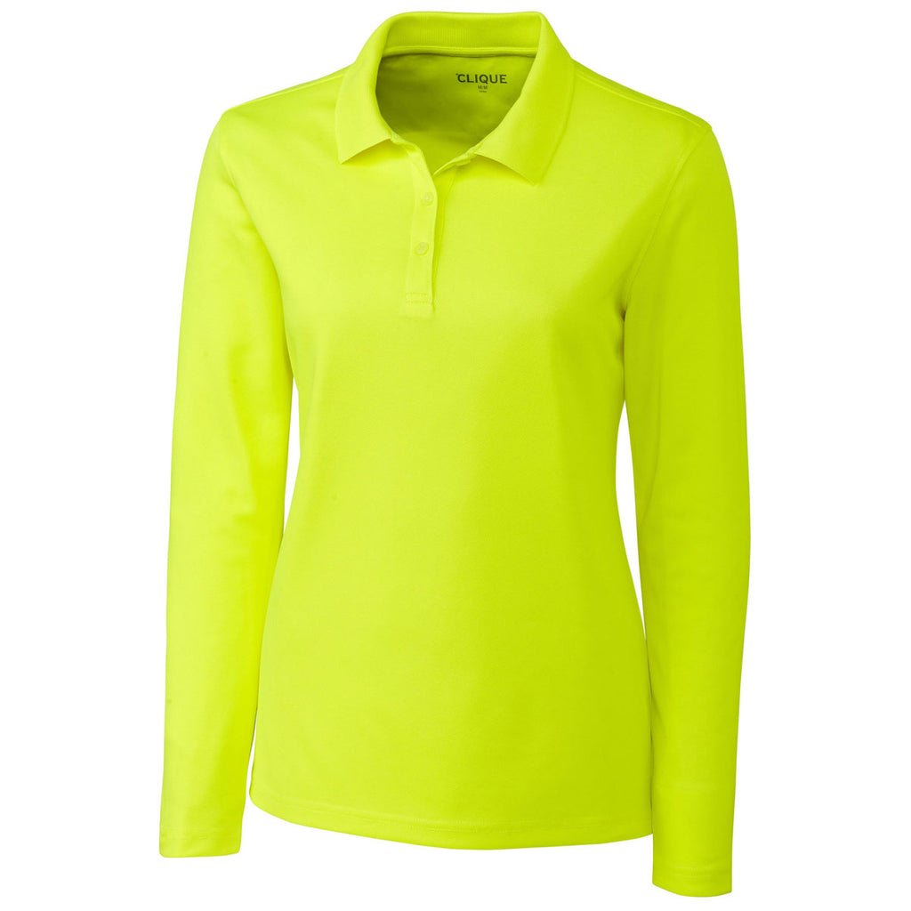 Usher in a new era of sleek women's apparel by ordering the Clique Women's Hi-Vis Yellow Long Sleeve Spin Pique Polo. The long sleeve shirt is perfect as the outer layer of a golf fashion ensemble. You can also wear the body heat trapping pique polo under a plush sweater. Open the rib knit collar to create an upscale look. Enjoy a long lasting polo that contains 100% rip and tear resistant spin-dyed polyester pique. The full taped neck seam prevents the fabric from fraying because of frequent use. Attach a custom logo on the large area where you tore off the label.Corresponding Men's Style: Clique Men's Hi-Vis Yellow Long Sleeve Spin Pique Polo