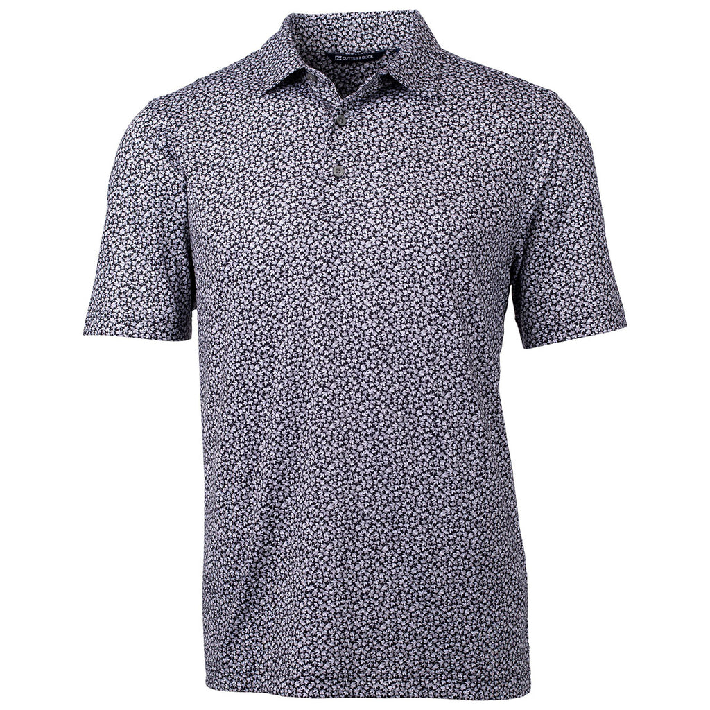 Cutter & Buck Men's Black/Polished Pike Magnolia Print Stretch Polo
