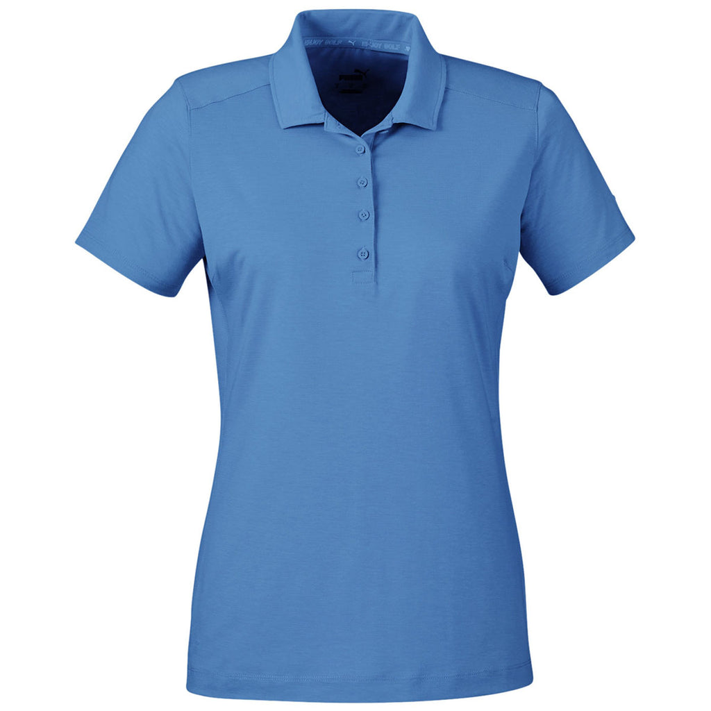 Choose a corporate logo for the Puma Golf Women's Lake Blue Bandon Polo to enjoy a sleek, professional look that stays looking great all day. The simple, straightforward design makes a perfect uniform top for those in sales or the service industry. Also a great option for those who like to golf, play tennis, or just look good.This product can only ship within the United States and Canada.