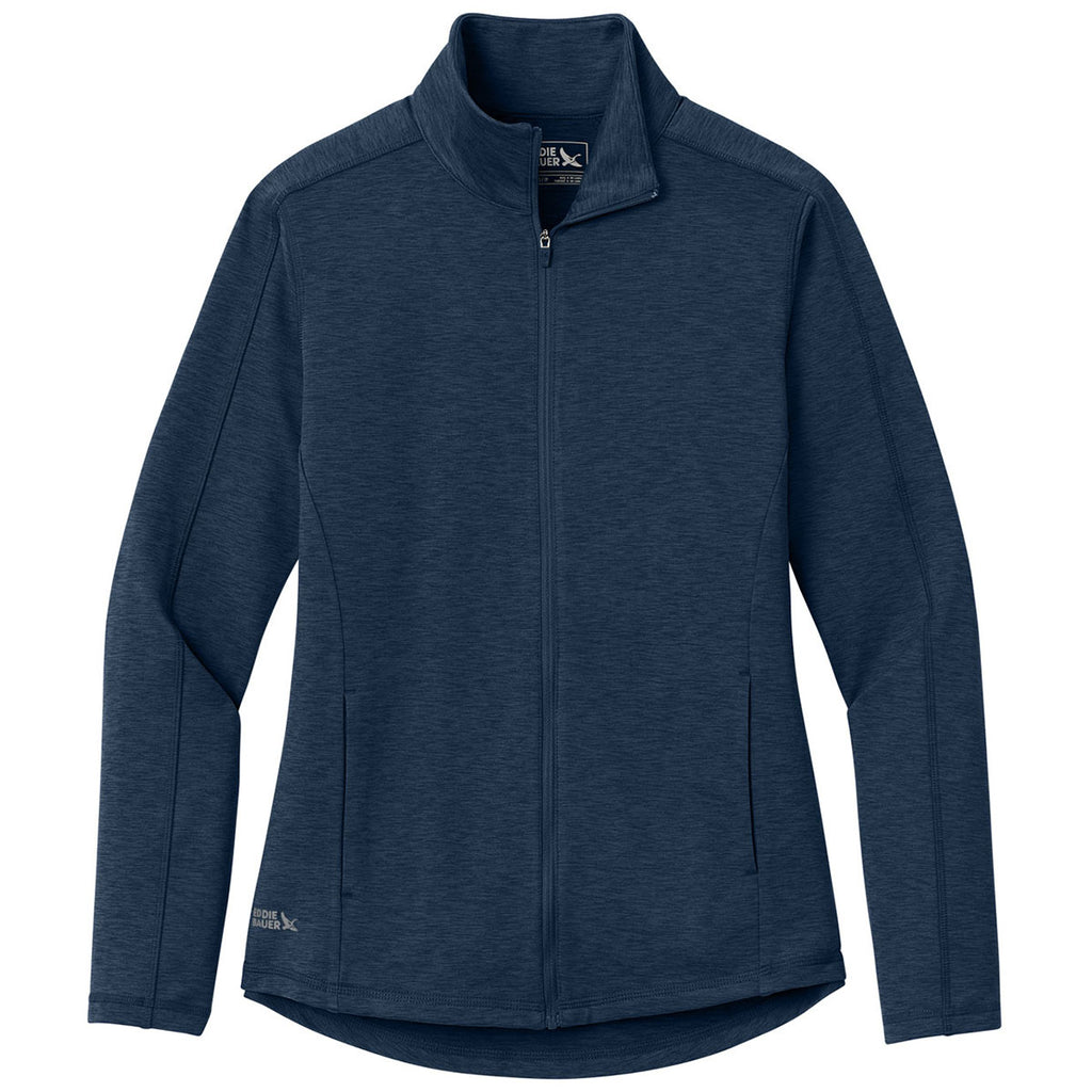 The Eddie Bauer Women's River Blue Navy Heather Adventurer Full Zip provides a flattering fit with practical custom appeal for corporate teams or group events. Featuring durable, lightweight fabric, it keeps wearers comfortable through all-day activities. This full zip layer effortlessly showcases embroidered logos beautifully, making it a reliable choice for active adventures and company representation.This product can only ship within the United States, Puerto Rico, Canada, and Mexico.