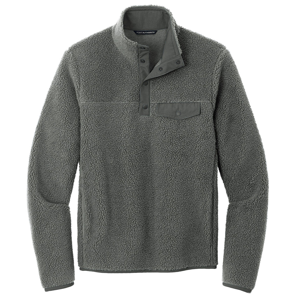Add embroidery to the Port Authority Men's Grey Steel Camp Fleece Snap Pullover for a soft, warm look that will keep you looking your best. The nubby high-pile fleece makes this pullover the ideal layering option, whether camping, hiking, or cozying up for a movie with a loved one. Place an order today.Highlights