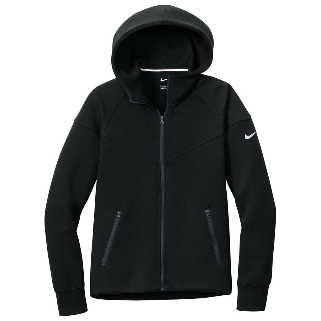 Add embroidery to the Nike Women's Black Tech Fleece Full-Zip Hoodie to create a custom look that will turn heads. This soft and smooth finish hoodie is ideal for layering while jogging, commuting to work, or just hanging out. Zippered pockets are great for your phone, keys, and cash. Place an order right away.