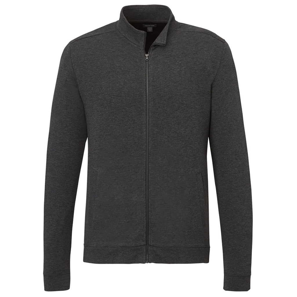 Choose your embroidery for the Trimark Men's Heather Dark Charcoal Rigi Eco Knit Full Zip to create a stylish, versatile look. Easily transition from the boardroom to drinks after work with the sleek jacket that is comfortable for all-day wear indoors and out. The eco-friendly option will update your look and your status with ease. Order today.Highlights