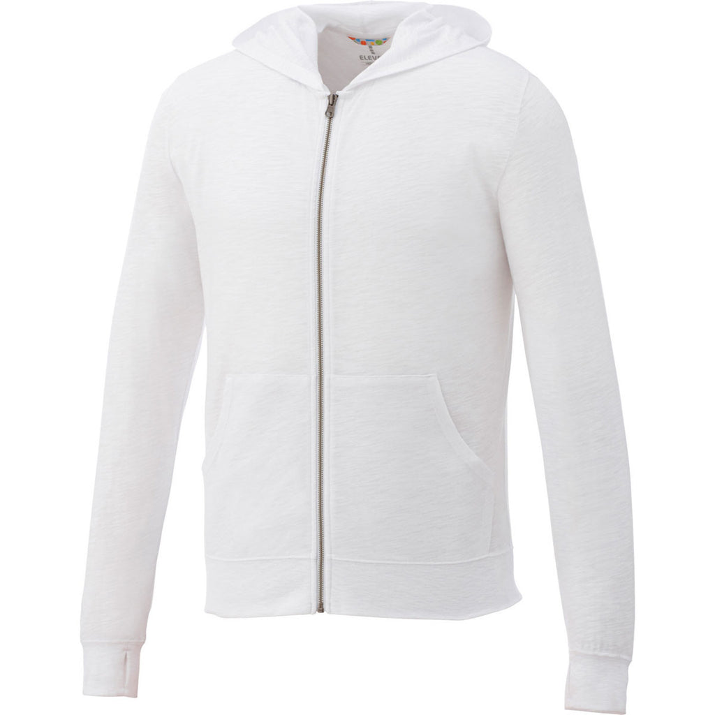 You want more than just a regular hoodie. But you're not quite sure what that means. Fortunately for you, we have the perfect illustration: the Elevate Men's White Garner Knit Full Zip Hoodie you see here. Not only does it offer that classic hoodie look with a modern twist, but it has everything going on inside the fabric to make it all count. Allow us to explain: with this hoodie, you'll have the fabric quality necessary to feel comfortable and flexible enough for athletic events, sitting around the house, even getting work done. And when you pair your custom logo to this hoodie, it means your brand will get noticed over and over again.Corresponding Women's Style:Elevate Women's White Garner Knit Full Zip Hoodie