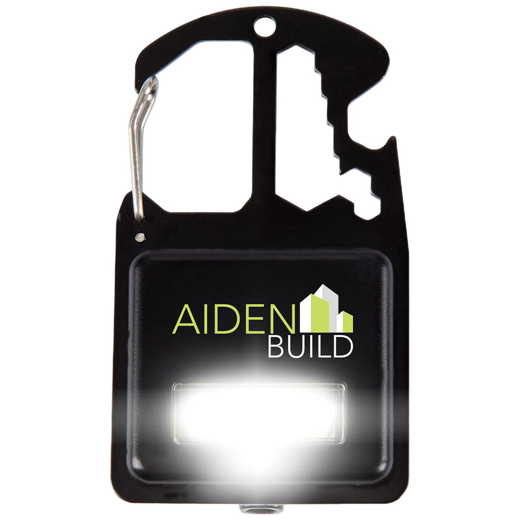 The Logomark Black Bryson Mini Multi-Tool COB Work Light is a versatile custom gadget that is perfect for everyday carry or emergency kits. Featuring a bright COB LED light and multiple tools in one compact design, it suits tradespeople, outdoor enthusiasts, or promotional giveaways. Durable and handy, it offers constant brand visibility in practical settings.The minimum order for this product is 100 pieces.