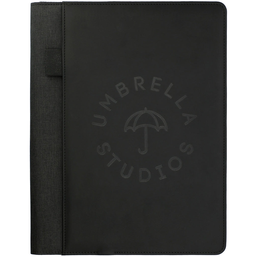 The Leed's Black 10" x 12.5" Vienna Wireless Charging Pad is a promotional item that pairs old school sensibilities with cutting-edge technological advancements. Your company's custom logo will look incredible when printed or debossed onto the Italian UltraHyde cover - inside, you'll find both a wireless charger and a lined writing pad.The minimum order for this product is 12 piece.