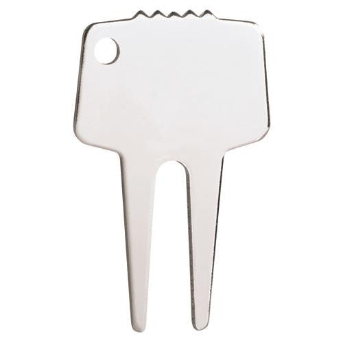 Poorly constructed divot repair tools do not make the grade for repairing the small indentations made by your golf balls. The stylish Silver-Tone Divot Repair Tool ensures you smooth over the ball marks created by long drives on fairways and short approach shots to greens. Purchase several of the divot repair tools to hand out to employees before the annual company golf tournament. Just remember to attach a custom logo to increase recognition of your company around the golf course.