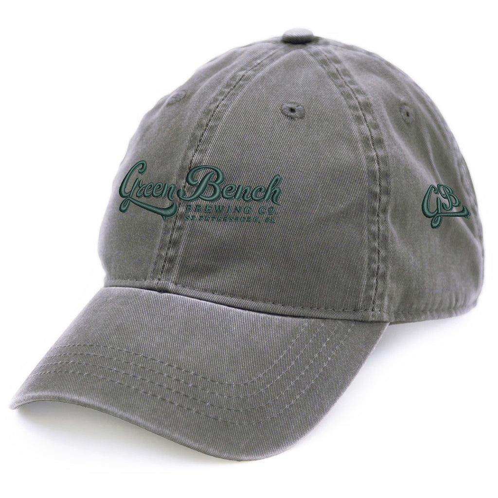 Merrimack Hat Co. Grey Cooper Cap with a custom logo is a creative way to showcase your organization, style, or logoed apparel line. Great for wearing while golfing, playing ball, or just hanging out, this hat has unstructured panels, a curved brim, and a low crown. The self-fabric strap with antique brass buckle closure allows for a one-size-fits-most design.