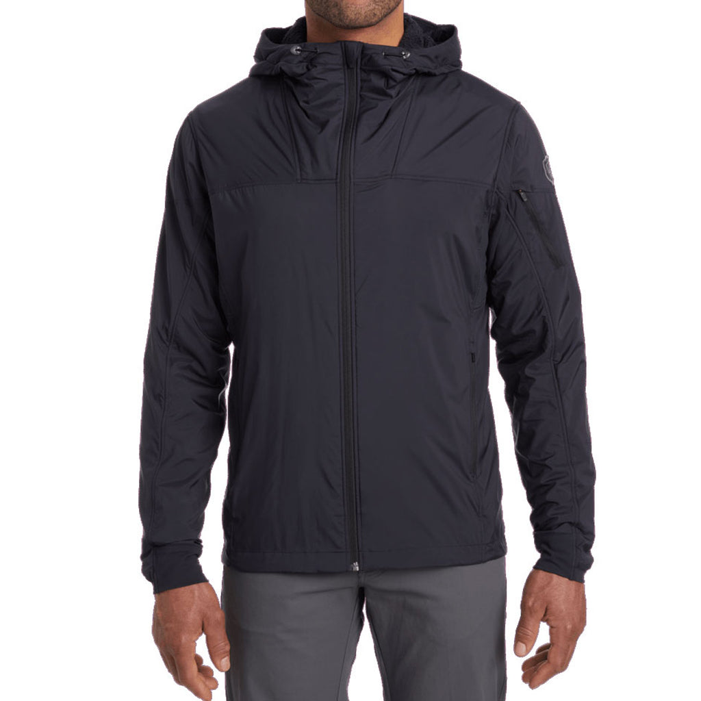 Choose embroidery for the KUHL Men's Raven The One Hoody for the only hoodie you will want and need for outdoor adventure. The athletic fit on this hoodie makes it perfect for layering as you hike, bike, and generally enjoy the outdoors. Add a custom logo to this hoodie with full zip front, ultralight insulation, thermal regulation, and comfort stretch. Try out a company logo to use the hoodie as part of employee apparel or gifts that can be used for work and play. Water-resistant fabric means this hoodie can be great for hunting, fishing, climbing, biking, hiking, and much more. Place your order right away.Highlights