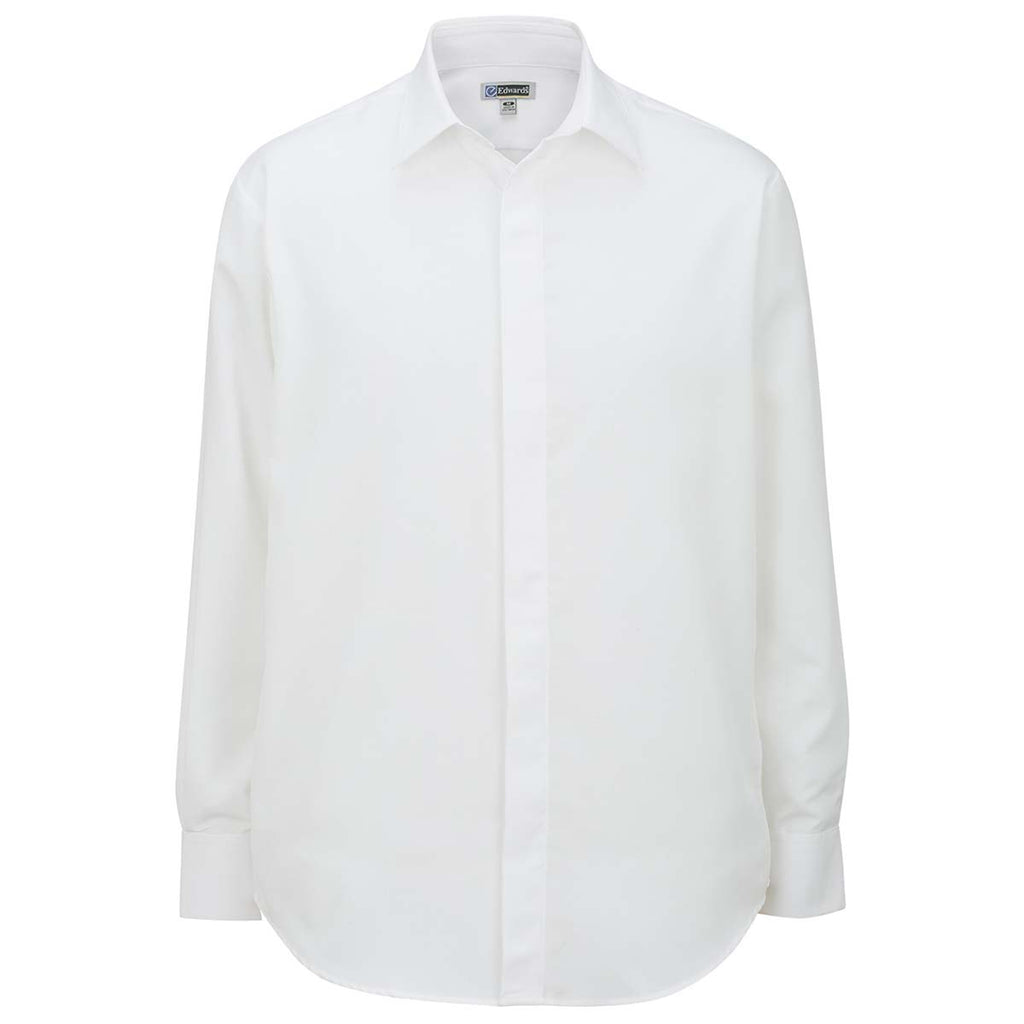 Create a custom updated look with the Edwards Men's White Batiste Cafe Shirt in a range of classic colors. Offering a modern fit in an understated style, this 100% polyester shirt is perfect for those who need employee apparel that demonstrates professionalism. Add a corporate embroidery to the long sleeve button up with chest pocket and narrow collar with hidden placket. Ideal for layering with a suit jacket as part of corporate uniforms the shirt is wrinkle resistant, offers soil release, and moisture wicking. Your custom logo will look beautiful on these shirts that offer the ability to be paired with jeans, slacks, or almost any type of attire you can imagine.Highlights