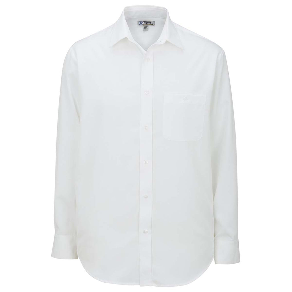 Create a custom updated look with the Edwards Men's White Batiste Shirt in a range of classic colors. Offering a modern fit in a contemporary style, this 100% polyester shirt is perfect for those who need employee apparel that demonstrates professionalism. Add a corporate embroidery to the long sleeve button up with chest pocket and pattern accents. Ideal for layering with a suit jacket as part of corporate uniforms the shirt is wrinkle resistant, offers soil release, and moisture wicking. Your custom logo will look beautiful on these shirts that offer the ability to be paired with jeans, slacks, or almost any type of attire you can imagine.Highlights