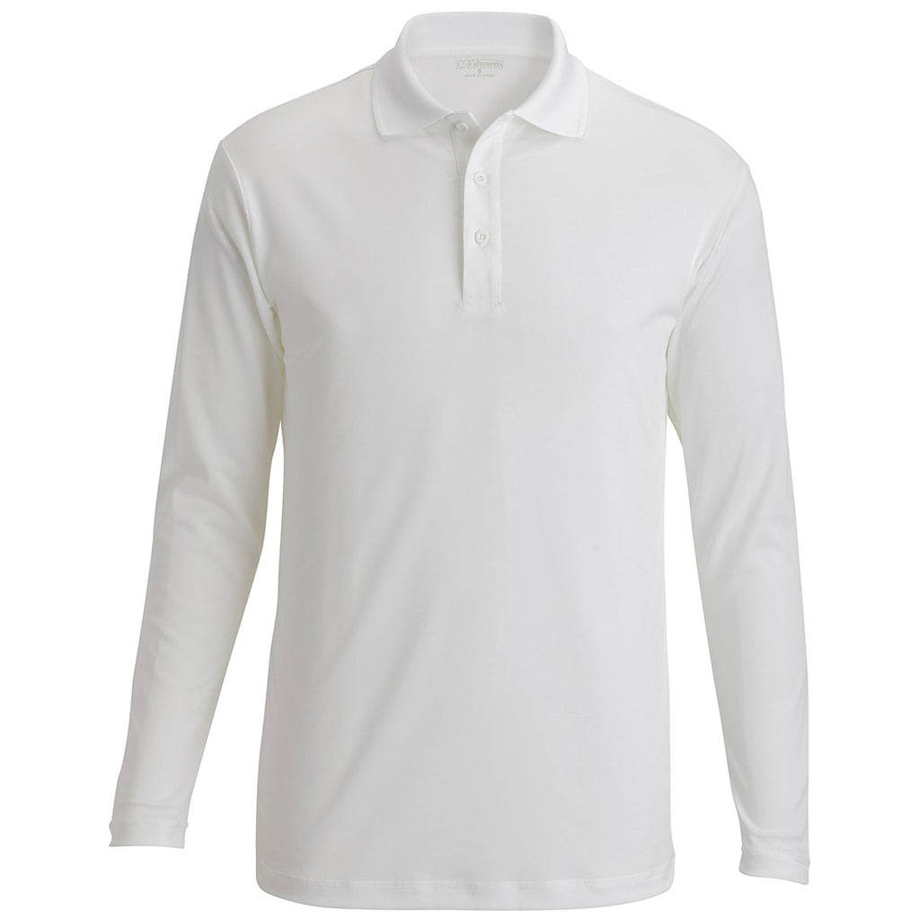 Edwards Men's White Mini Pique Snag Proof Polo with custom embroidery is a cost-effective option to build your wardrobe or brand. The moisture-wicking polo with tag-less collar and hemmed bottom and cuffs are great indoors and out with a slightly longer body for coverage. Place an order right away.Highlights