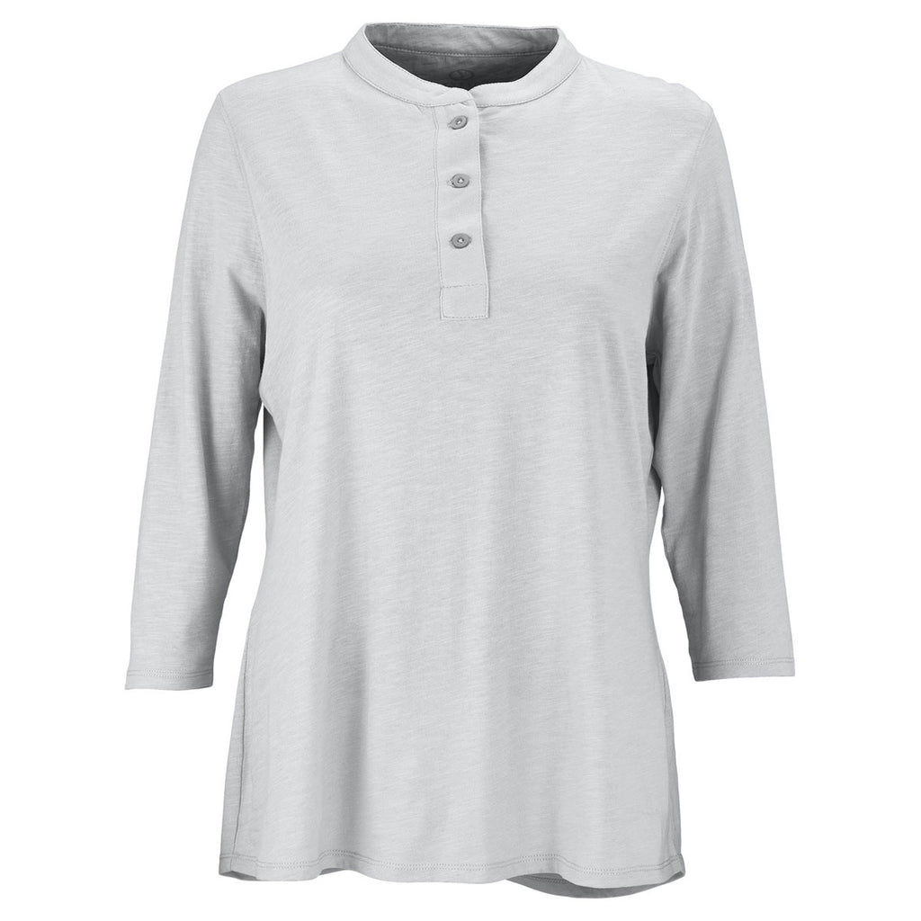 With a self-goods collar and three-button placket, the embroidered Vantage Women's Silver Cambridge Henley sets the pace for casual corporate fashion. Enjoy the smooth feel of cotton and the tough performance of polyester while playing golf or working in the backyard. Add the curved hem bottom and you have a long sleeve shirt that will make a favorable impression on everyone you meet at industry trade shows. Even better, hand out the shirt to customer prospects to build good will. Make sure to attach your company logo on the large imprint area to stir interest for your brand.Corresponding Men's Style: Vantage Men's Silver Cambridge Henley