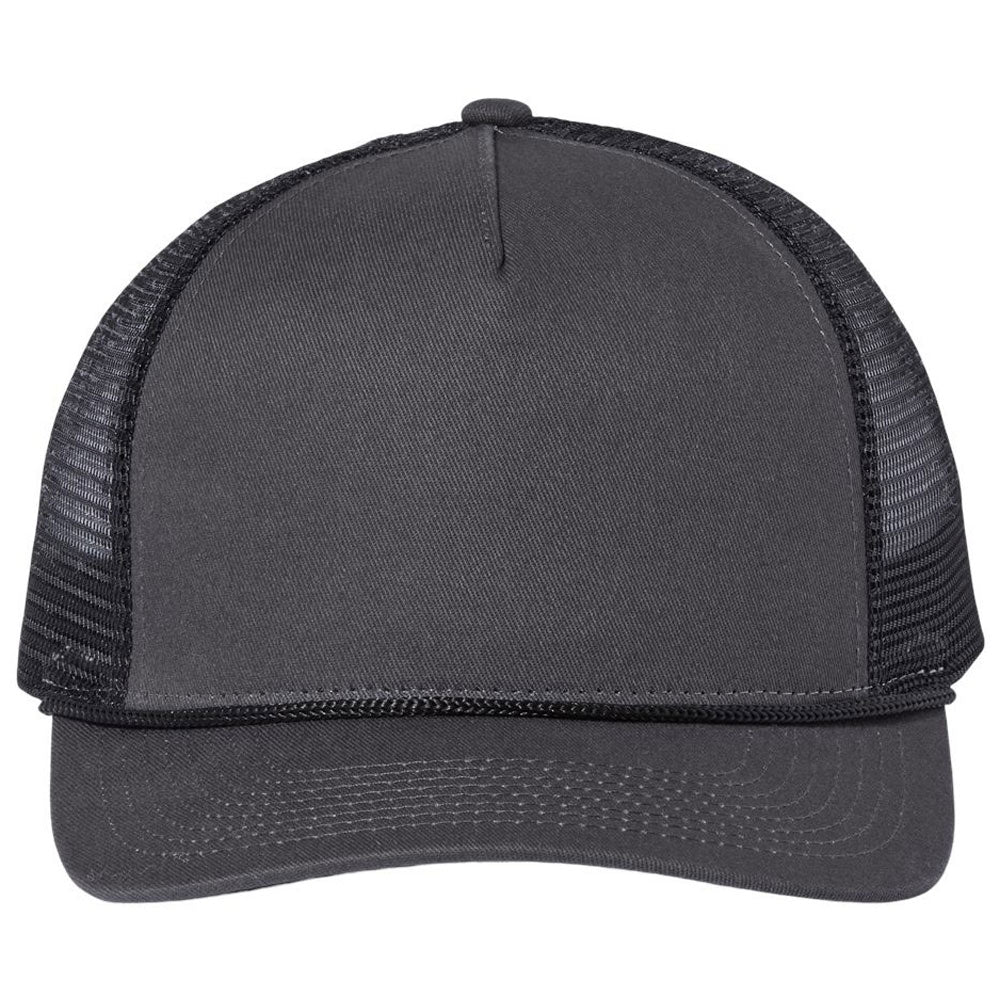 Go old school with a custom Dri Duck Unisex Charcoal/Black/Black Retro Rope Cap. Made of a 100% cotton twill front with polyester mesh back panels, this trucker style inspired cap has five structured panels in a mid profile with rope design. The pre-curved visor comes with a black undervisor and moisture wicking sweatband. Add a company logo to the cap to use as part of a uniform or to use at trade shows and special events. The one size fits most design has a plastic snapback closure that can be adjusted as needed. Pl ace an order today to make sure these caps are part of your logoed apparel line.