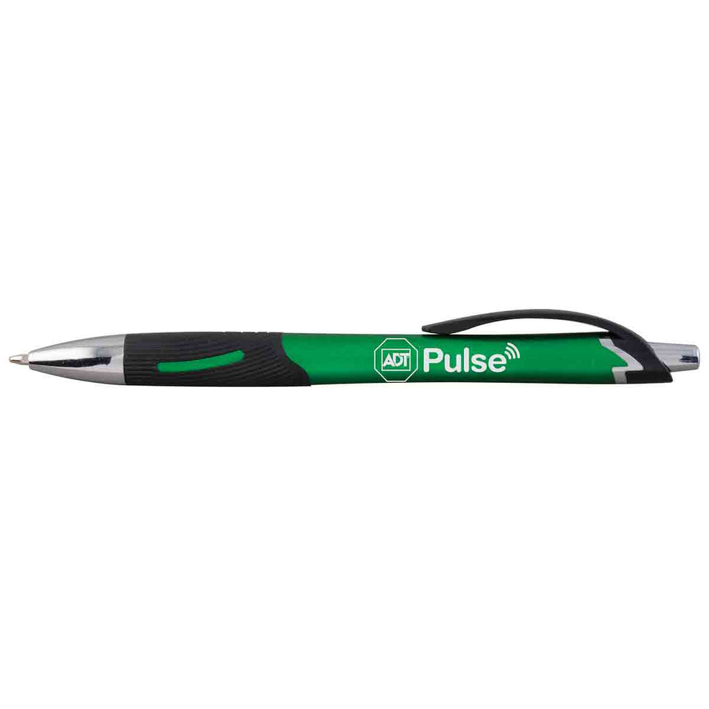 Push a button to eject or retract a Hub Pens Green Akoni Pen tip that consistently delivers ink on all types of writing surfaces. Ballpoint quality writing keeps you on top of taking notes during business seminars and conferences. Market your company by giving the pen away on customer and employee appreciation days. All you have to do is add your corporate logo to spread the word about your company in the community. Screen printing makes it easy for potential customers to recognize your brand. The raised rubber grip prevents finger and hand pain that results from frequent use of the pen.