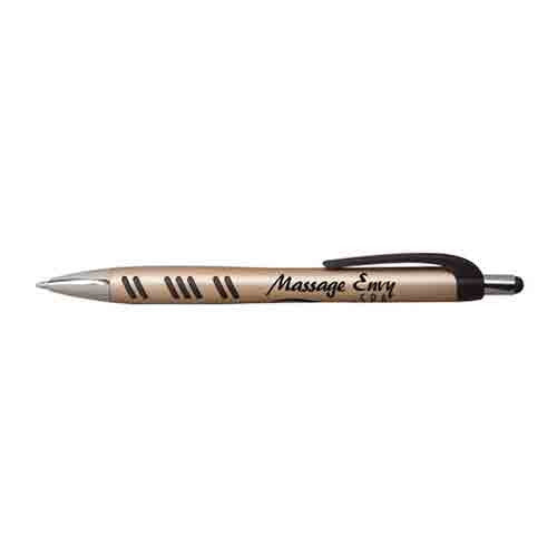 Rugged metal protects the ink cartridge on the Hub Pens Cream Mantaray Stylus from damage caused by frequent drops from office desks and tables. The metal construction of the pen also generates a sleek appearance that will turn heads at corporate events. Take advantage of the head turning by attaching your corporate logo to the large upper barrel. The ideal promotional gift contains a brushed satin finish and silver accents that create an executive appearance for the pen. Use the soft stylus to write messages on electronic devices such as an iPad or mobile tablet, without having to worry about scratching the sensitive touchscreen surface.