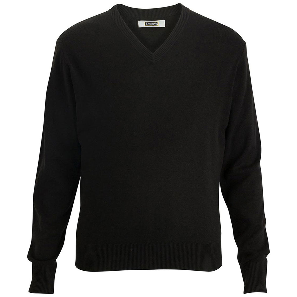 Expand your style with a custom embroidered Edwards Unisex Black Essential V-Neck Acrylic Sweater. This gorgeous long sleeve V-neck will boost nearly every wardrobe with its stylish simplicity. Add a custom logo or monogram to create a personalized gift or a company logo to use these as high-end employee apparel. Ideal as corporate apparel on more casual days or in a more laid-back company, the acrylic sweater is professional, yet comfortable. Wear alone or layer for a unique look all your own.Highlights