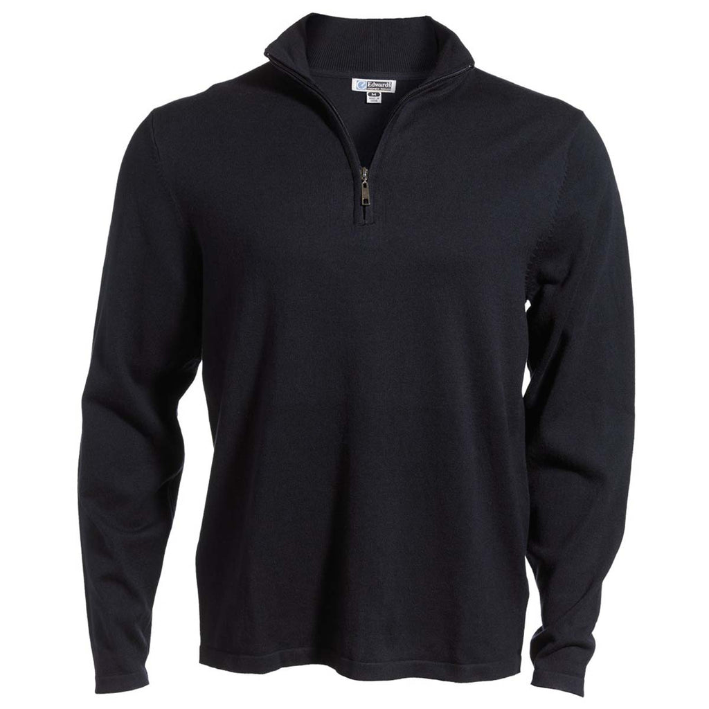 A unique take on a custom cardigan is found in the Edwards Men's Navy Fine Gauge Quarter Zip Sweater. Made of a cotton, acrylic, and nylon blend this quarter zip sweater offers comfort and versatility in a look that can go from the office to a backyard BBQ with ease. Add a company logo or corporate employee to use these pullover quarter zip sweaters as employee apparel or as part of corporate uniforms. The impeccable style and rib knit collar will be an instant favorite in all types of weather. These sweaters can easily be layered and worn alone to offer the look you need and want.
