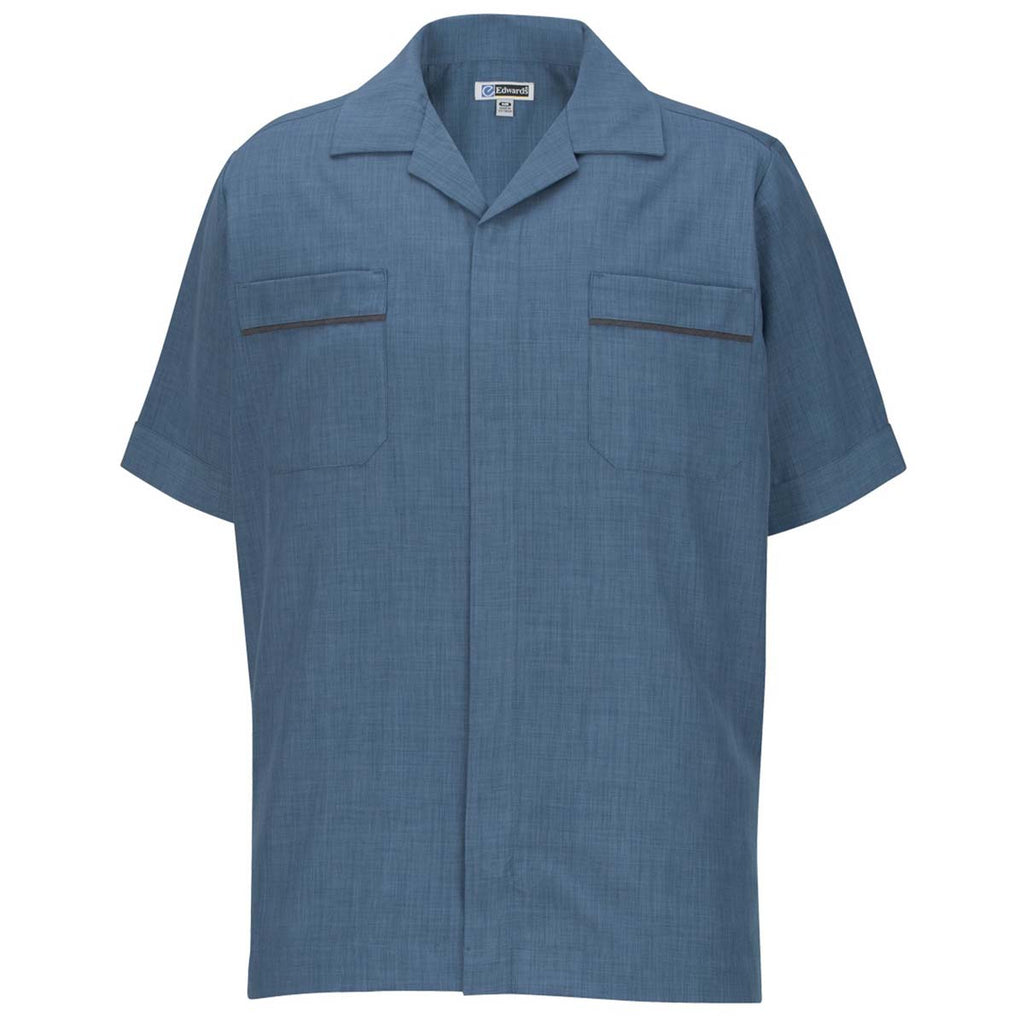 Add a custom embroidery to the Edwards Men's Riviera Blue Pinnacle Service Shirt to create a look unique to your company or organization. Made of 100% polyester the contemporary styling of this comfortable to wear, easily washable shirt is unmatched. Available in six color combinations this service shirt is ideal as part of employee apparel when paired with slacks or as corporate uniforms for large organizations. The hidden placket with zipper down front with snap closure ensures a tidy appearance on the short sleeve shirt with contrasting piping on the pockets.Highlights