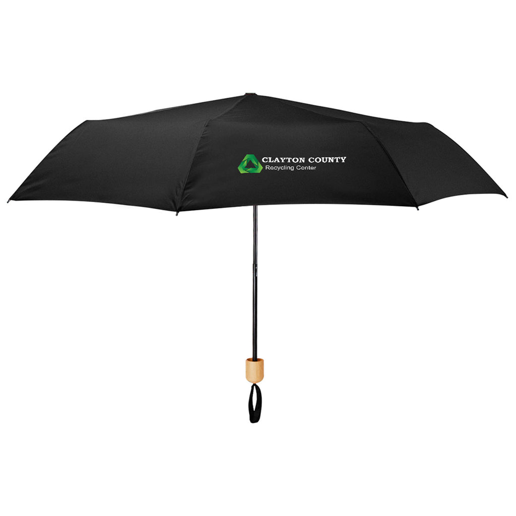Hit Black 41" Arc Umbrella with 100% RPET Canopy & Bamboo Handle