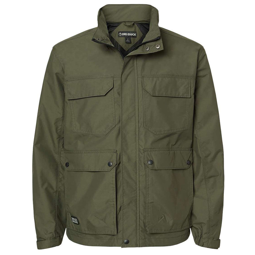 Dri Duck Men's Olive Field Jacket with a custom logo is a must have for the hardest workers and outdoorsmen in your life. Made with a 100% nylon shell and polyester mesh lining for the body and hood, this jacket is ready for adventure whether it comes in the form of hard work or play. Add a company logo to the water resistant jacket with packable hood and storm flap to use as part of employee apparel or a custom logo to wear the drop tail design as you hike, bike, and camp in the wilderness. The options are endless for this lightweight field jacket that is as appropriate on the construction site as it is on the morning commute. Place your order right away.