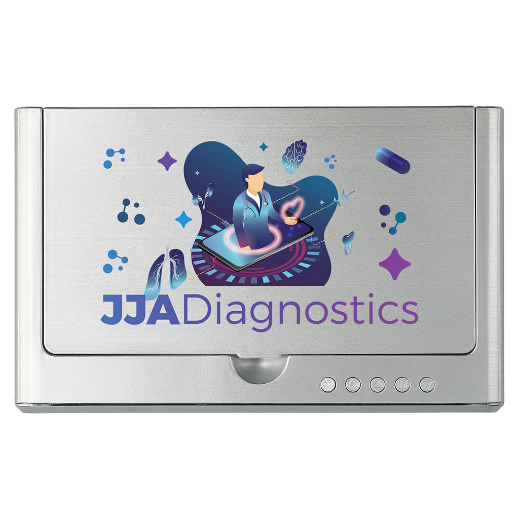 The Leed's Silver UV Sanitizer Desk Clock with Wireless Charging may have a slightly retro-inspired style...but take a closer look and you'll realize that this accessory is as contemporary as it gets. Inside of the device, UV-C light technology kills 99% of microorganisms tested. All it's missing is your custom logo printed on the outside.The minimum order for this product is 16 piece.