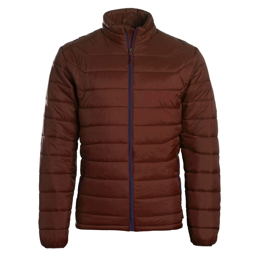 Shoulder set sleeves and lined closure cuffs raise the fashion bar for the embroidered Landway Men's Russet/Navy Puffer Polyloft Jacket. The ultra light polyfill jacket is perfect to take with you on extended business trips without being stuck carrying around a bulky jacket. One-hundred percent nylon easily absorbs the wear and tear caused by frequent use. Polyester insulation ensures you enjoy supreme comfort throughout an extended cold weather camping trip. Side vertical panels encourage the circulation of air to cool the body. Add your company logo on the large imprint area and watch awareness of your brand soar. Your team will look great when outfitted with this jacket from Landway.Highlights