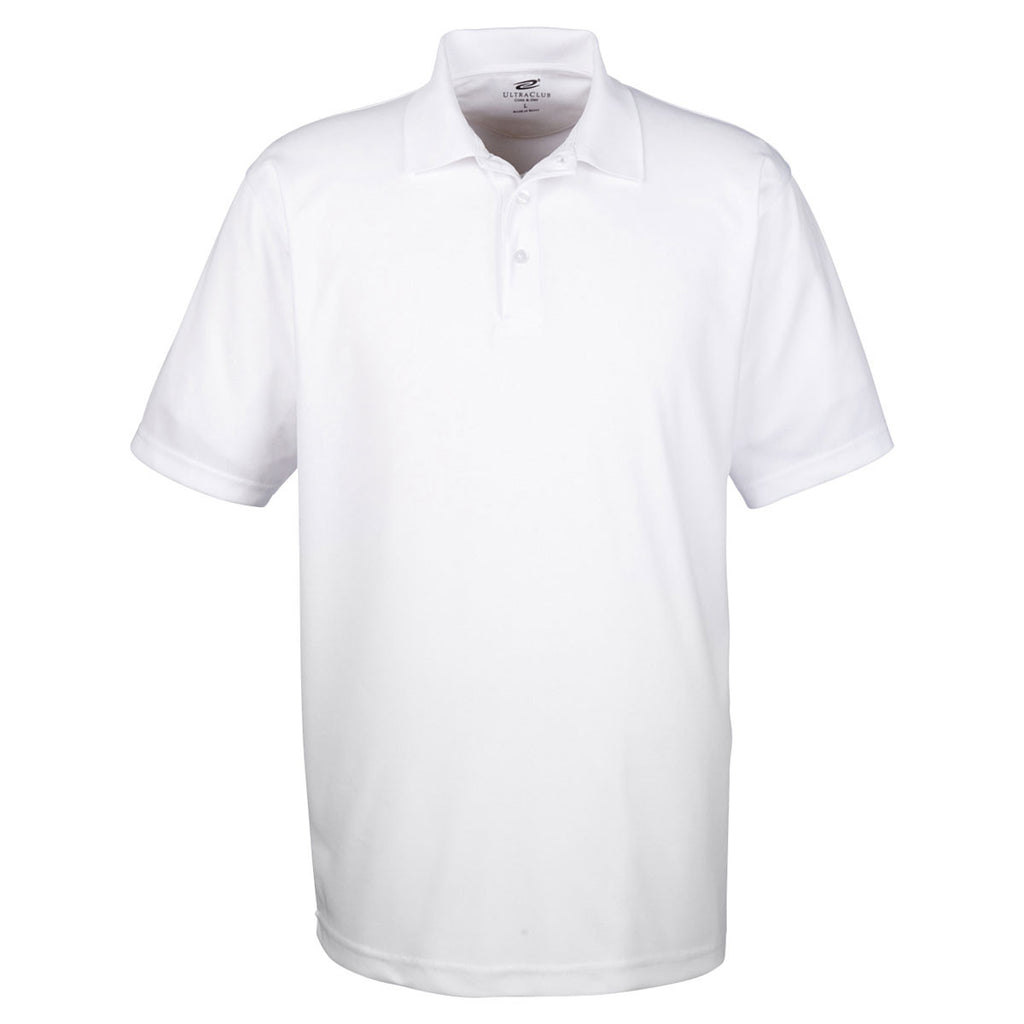 One-hundred percent polyester mesh pique makes the UltraClub Men's White Cool & Dry Mesh Pique Polo ideal for wearing on the golf course. The multi-purpose polo offers incomparable breathability to keep you comfortable throughout a steaming hot summer day. Ultraviolet ray protection prevents the sun from damaging sensitive skin. Double-needle flat-lock stitching at the shoulders prevents splits at the seams. Add your corporate logo to generate buzz about your products and services. Logoed corporate apparel help sell your company in the community.Corresponding Women's Style: UltraClub Women's White Cool & Dry Mesh Pique Polo