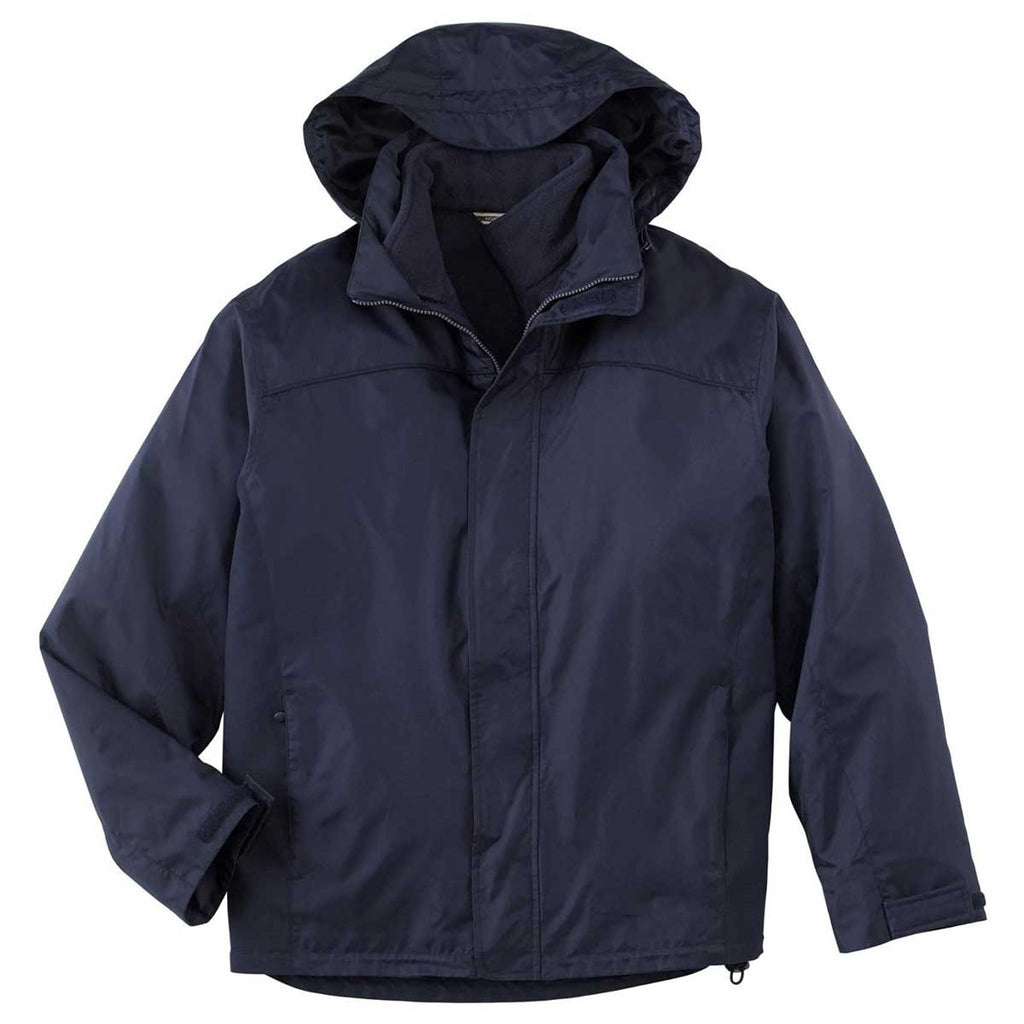 You never sweat the small stuff, whenever you wear the North End Men's Midnight Navy 3-in-1 Jacket. The 100% polyester mesh in the upper body and hood provides maximum breathability on sweltering hot summer days. Enjoy wearing the completely seam-sealed waterproof shell during inclement weather any time during the year. Brushed tricot lined pockets store everything from car keys to your most important business documents. Add a custom logo to the North End Men's Midnight Navy 3-in-1 Jacket to promote your company at civic events. Give your employees and loyal customers this affordable outerwear to show your appreciation. The detachable hood conveniently stores in one of the lower reverse coil zippered pockets.Highlights