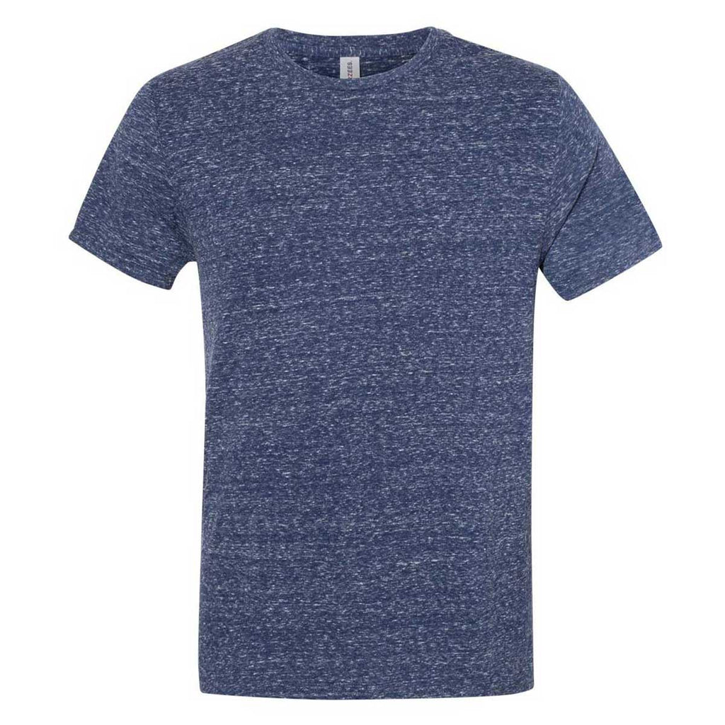 Add a screen print to the Jerzees Men's Navy Snow Heather Jersey Crew T-Shirt to create a unique look for yourself or to share with others. The polyester ringspun cotton blend is preshrunk jersey with shoulder taping and tearaway label. A good tee is a staple for almost every wardrobe and these heathered tees are a bit softer than most when it comes to their unique coloring. Create a custom gift that friends, family, employees, and everyone will wear and enjoy year round. Perfect as part of a uniform at some businesses a company logo can be added in the design of your choosing. Use as workout wear, daily wear or anything you want as these tees are rugged and versatile.Highlights