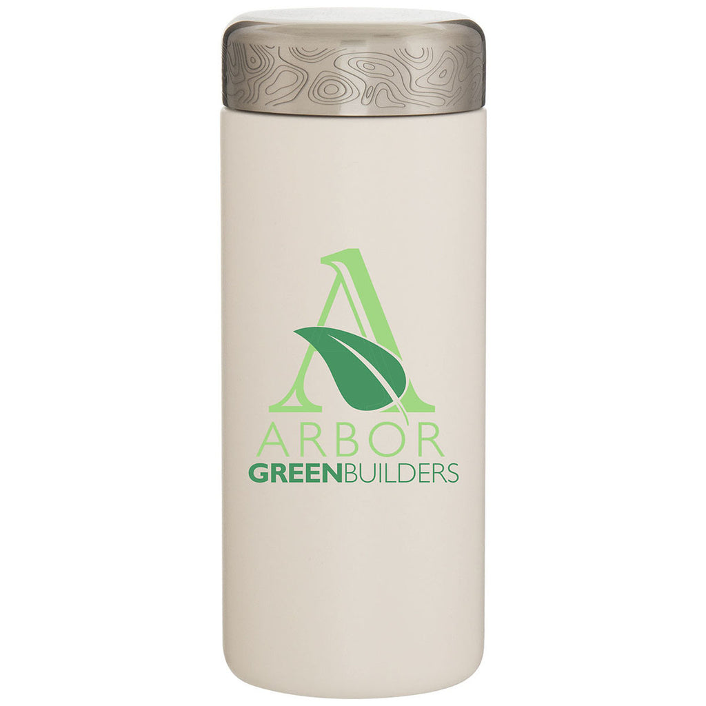 A custom H2Go Matte Dew Aerial 16.9oz Recycled Stainless Steel Tumbler, reflecting a commitment to sustainability. Its double-wall insulation keeps drinks at the desired temperature, and the sleek design fits comfortably in hand. Custom branding opportunities make it a thoughtful and eco-friendly corporate gift.