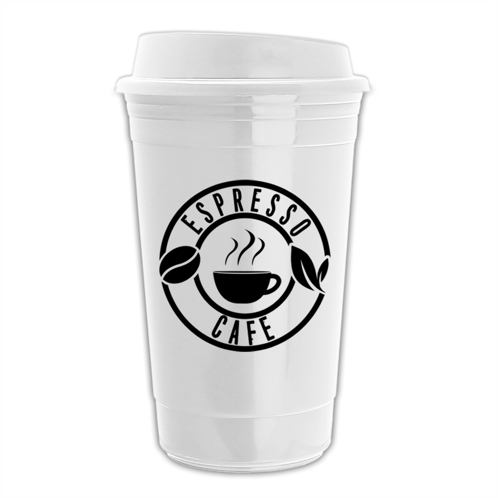 Garyline White Traveler Insulated Cup - 16 oz.The minimum order for this product is 250 pieces.