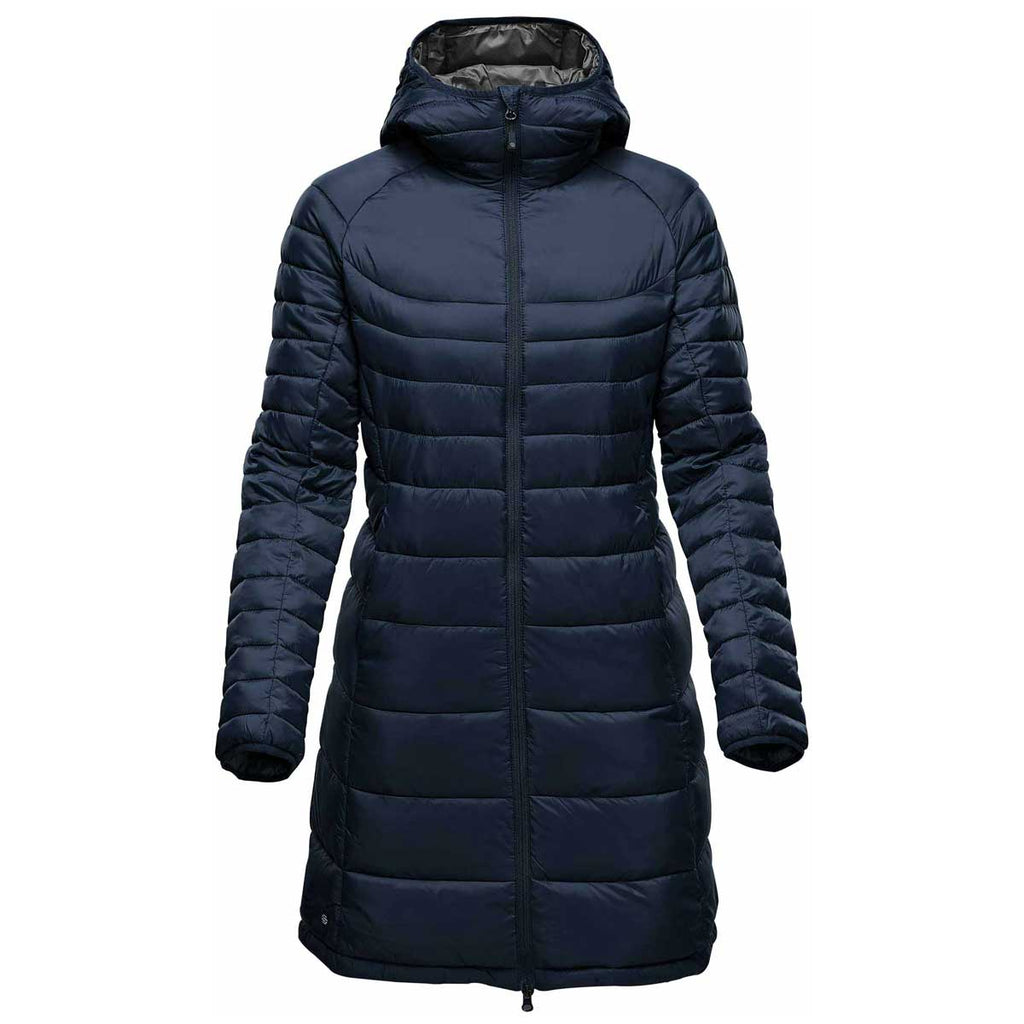 Brave the cold in a custom logo Stormtech Women's Navy/Graphite Labrador Parka. Enjoy an outdoor adventure in the jacket known as a magician. The ultimate puffer jacket can be custom embroidered to look great while keeping you warm with the full coverage hood and ultralight polyfill baffles. The best part comes when you no longer need to wear the jacket on your outdoor adventure. All you have to do is fold the jacket into its own pocket and it converts into a travel pillow. This is great for those who travel between climates and do not wish to carry a bulky jacket. Add a company logo to offer these to those who travel for the company or offer them as high-end gifts that will garner lots of use.