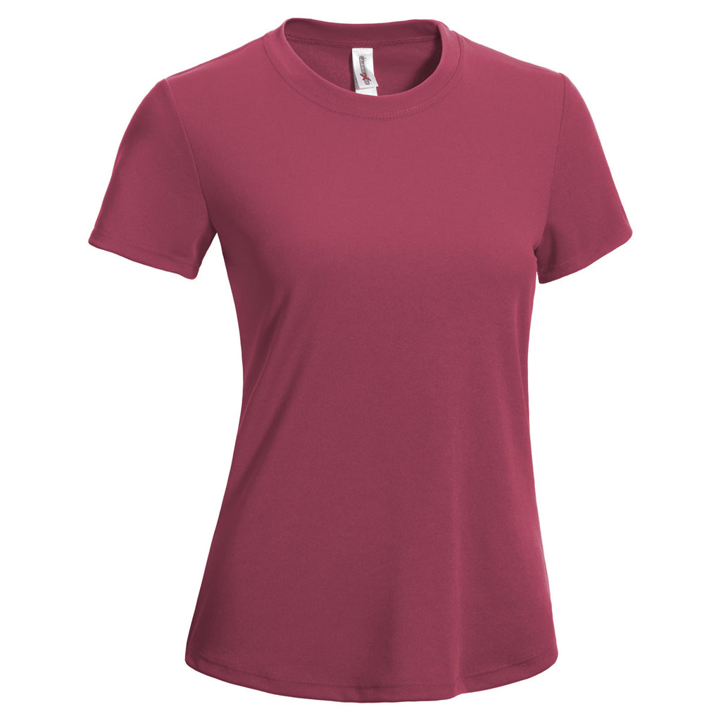 Expert Women's Cardinal Short Sleeve Tee features short sleeves, crew neck and crafted from 100% microfiber polyester, available in a range of hues. Perfect for everyday wear or the most intense workouts, this tee comes in a relaxed fit in feminine contoured design. Soft, breathable fabric expertly wicks sweat to keep you as dry as possible. Treated with BodyFreshe to eliminate odors and inhibit odor-causing bacteria. Promote a healthy and active lifestyle with these workout-ready shirts, ready to sport custom logo imprint of your company.The minimum order for this product is 12 pieces.