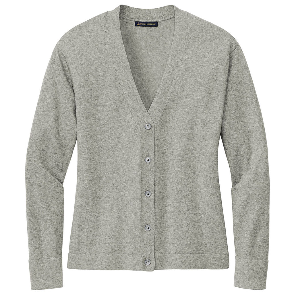 Brooks Brothers Women'sLight Shadow Grey Heather Cotton Stretch Cardigan Sweater with custom embroidery is a classically stylish option. A great layering piece that provides effortless warmth, and comfort. An essential staple in any corporate style that embodies great off-duty professionalism. Dress it up or keep it casual. Add a company logo to offer the gift of laid-back luxury.